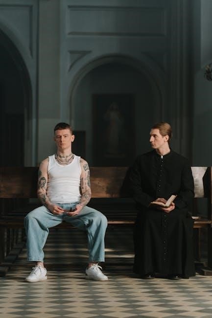 Confession guide PDFs often detail the confessional process, clarifying the priest’s role and proper etiquette for a respectful and fruitful sacrament experience.