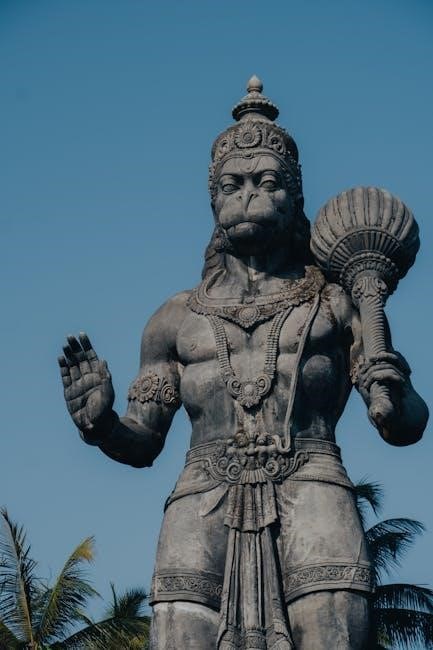Lord Hanuman occupies a revered position in Hinduism‚ celebrated for his unparalleled devotion‚ strength‚ and courage. As a central figure in the epic Ramayana‚ he embodies selfless service and unwavering loyalty to Lord Rama. His character serves as an ideal for devotees seeking to cultivate these virtues within themselves. The accessibility of the Hanuman Chalisa in Kannada allows a wider audience to connect with Hanuman’s inspiring story and teachings.
