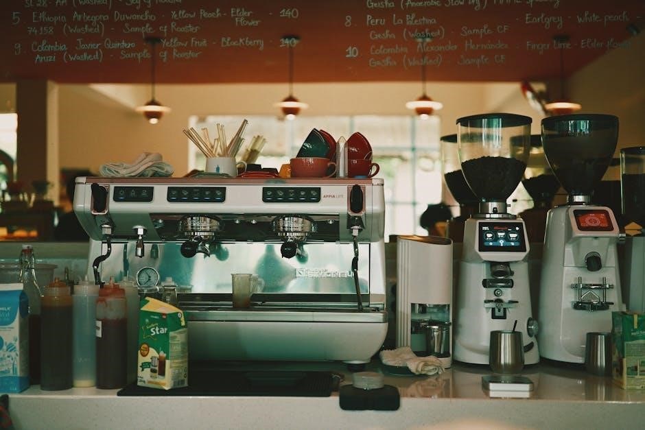 Discover the art of perfect coffee with this guide‚ exploring features like burr grinding‚ programmable settings‚ and easy cleaning for a delightful brewing experience.