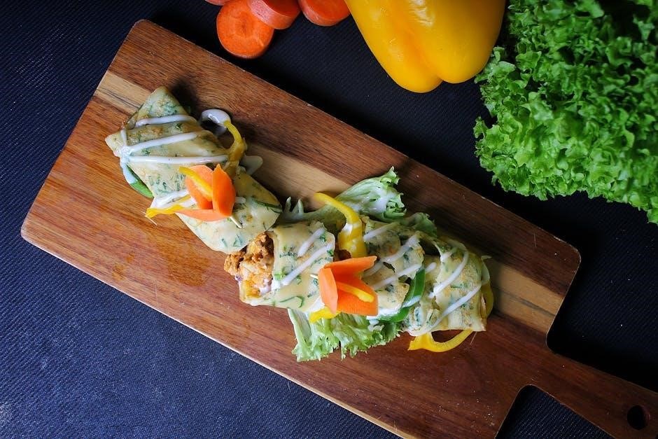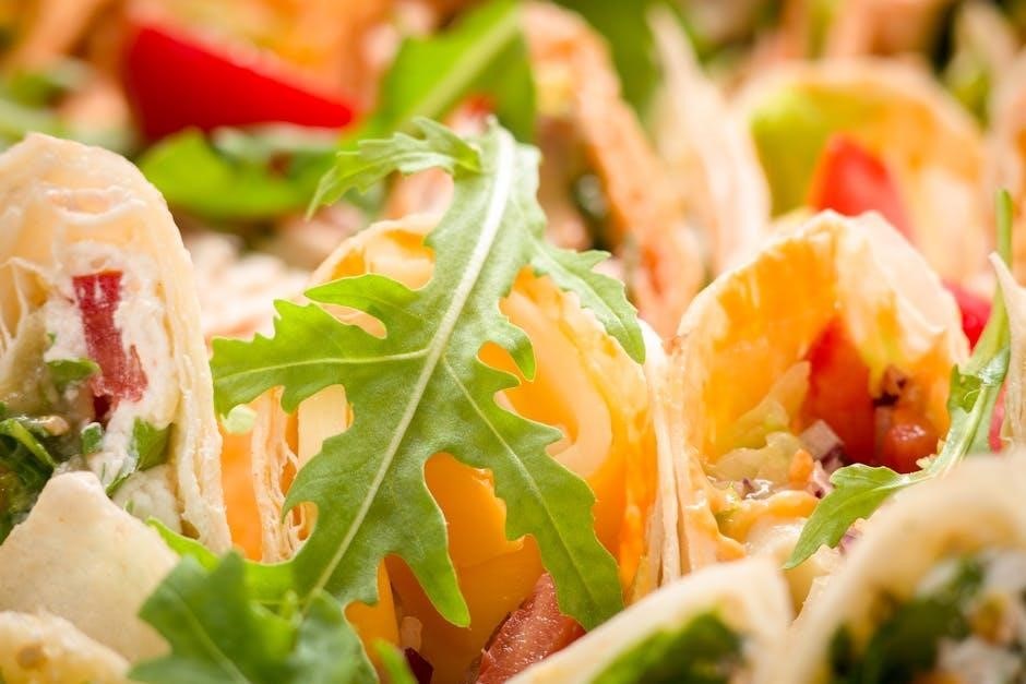Fat content‚ though typically moderate‚ is also specified‚ alongside sodium levels which can be surprisingly high due to processing. The PDF will reveal if the tortilla contains added oils or preservatives. For gluten-sensitive individuals‚ confirming the tortilla’s composition is vital. Understanding the tortilla’s nutritional profile‚ as outlined in the PDF‚ allows for a more accurate assessment of the Firecracker Wrap’s overall health impact.