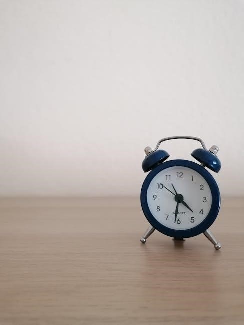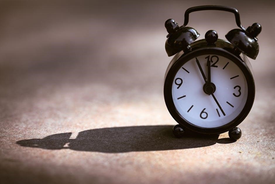 Use the hour and minute buttons to adjust the time accordingly. Some clocks feature a 12/24-hour format option, selectable during this process. Confirm your settings by pressing the “Set” button again. Ensure the correct time is displayed before proceeding to alarm settings. Refer to your specific model’s diagram for button locations, as they can vary. Proper initial setup guarantees accurate wake-up calls!